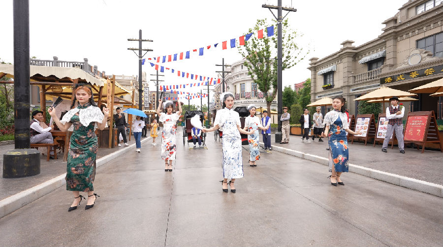 為全景式展現中國近現代時期獨具特色的社會風貌和人文風情,贛州方特東方欲曉設計建造了“王朝印記”“都會記憶”“崢嶸歲月”“激情歲月”“天高云淡”“歡樂港灣”等六大分屬不同時代的主題區域。從刷著“十萬工農下吉安”紅軍宣傳標語的瑞金街,到設有“東商洋貨”和“寶麗唱片行”的“十里洋場”上海街、京味十足的北平街、港風濃郁的香港街,逼真的時空穿越感讓游客身臨其境、流連忘返。