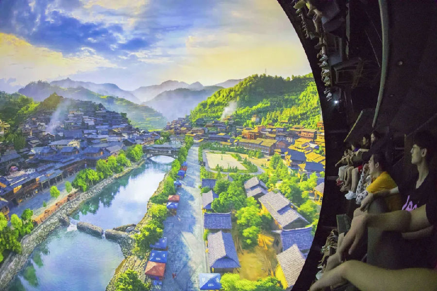 大型球幕飛翔影院《飛翔》作為贛州方特的“明星項目”,以5層樓高的巨幅球幕、靈巧可動的懸掛式座椅配合宏大的電影畫面,呈現出全包圍式虛擬環境,帶領游客“翱翔”于神州大地,俯瞰祖國名山大川,領略瑰麗的自然風光,飛越三峽大壩、大興機場等超級工程,欣賞新中國飛速發展帶來的輝煌成就。