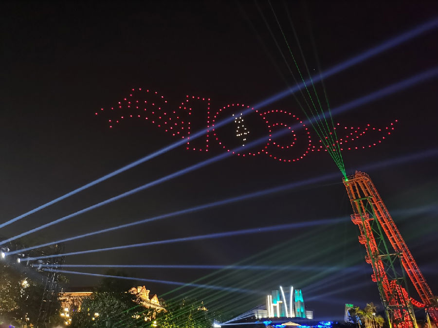 南寧方特東盟神畫舉辦了以“慶祝建黨100周年”為主題的無(wú)人機(jī)星空表演,讓游客大飽眼福。隨著音樂節(jié)奏不斷變化,無(wú)人機(jī)在星空描繪組合出“100周年”“小紅軍吹號(hào)角”等創(chuàng)意圖案。與此同時(shí),絢麗的花船搭配真人歌舞表演,在湖面上緩緩前行,璀璨的燈光點(diǎn)亮夜空,與無(wú)人機(jī)表演相映成輝,令現(xiàn)場(chǎng)游客發(fā)出陣陣歡呼聲、贊嘆聲,抒發(fā)對(duì)黨和祖國(guó)的誠(chéng)摯熱愛。