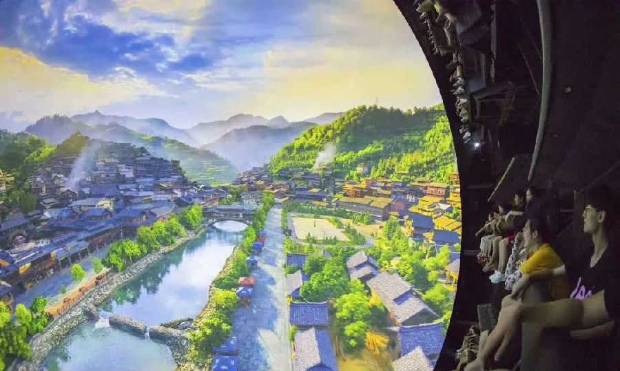 大型球幕飛翔影院項目《飛翔》,帶領(lǐng)游客“翱翔”于神州大地,俯瞰祖國名山大川,領(lǐng)略瑰麗的自然風(fēng)光,飛越三峽大壩、天眼等超級工程,欣賞新中國飛速發(fā)展帶來的輝煌成就。
