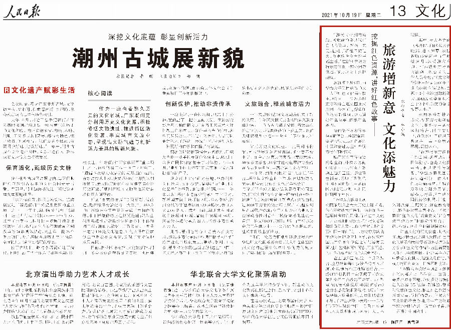 《人民日報》在報道中高度贊揚了華強方特以“文化+科技+旅游”的融合形式弘揚紅色文化、演繹紅色經典這一創舉,是為“旅游增新意”,為“文化添魅力”。文中特別提到“華強方特將紅色文化教育意義與合家歡主題公園的體驗性融合在一起,不斷顯現出產業鏈規模效應”“讓游客在旅游中感受文化魅力、增強文化自信”。