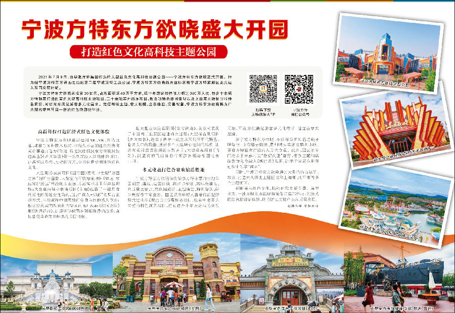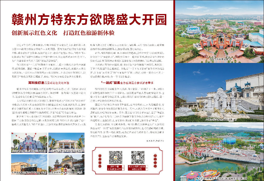 除了此次以新聞形式報道外,方特在今年還受到《人民日報》的兩次專題聚焦。今年5月10日,華強方特在江西贛州隆重發布了主題公園新品牌——“方特東方欲曉”,正式進軍紅色旅游領域。隨著新品牌旗下贛州方特東方欲曉與寧波方特東方欲曉的陸續開園,憑借令人耳目一新的紅色旅游體驗,方特東方欲曉受到廣大游客的熱烈追捧,掀起了紅色旅游體驗熱潮。也正因此,當贛州方特東方欲曉與寧波方特東方欲曉開園之際,《人民日報》分別在5月28日和7月9日,以專題形式對兩座主題公園進行了詳細介紹。