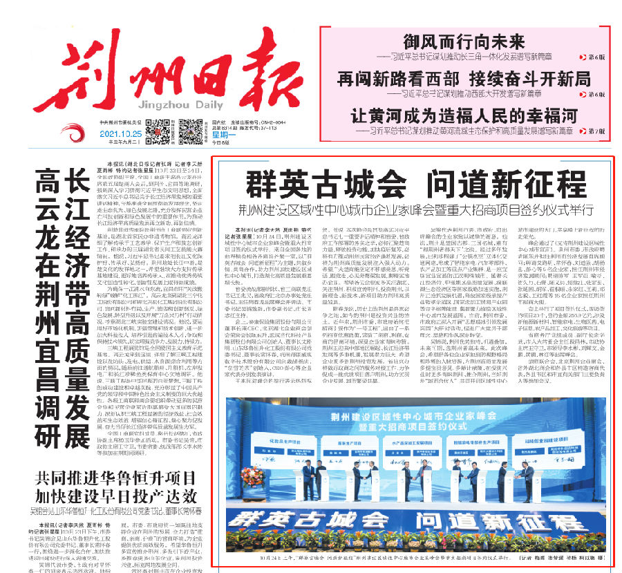 10月24日,在荊州建設區(qū)域性中心城市企業(yè)家峰會暨重大招商項目簽約儀式上,華強方特集團總裁劉道強被荊州市委市政府正式聘為“荊州市經(jīng)濟發(fā)展顧問”。湖北省委統(tǒng)戰(zhàn)部副部長王兆民、荊州市委書記吳錦等黨政領導,與數(shù)百位來自全國各地的商界精英和各界嘉賓一道見證了這一時刻。10月25日的《荊州日報》對此進行了頭版報道。
