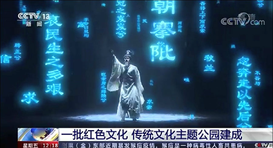 其中,園區(qū)重點打造的大型真人演藝特效劇場項目《屈原》獲得了央視重點報道。央視特別介紹到:“位于湖北荊州的方特東方神畫主題樂園,園區(qū)中開設(shè)的AR劇場表演項目《屈原》,以全息投影技術(shù)營造的逼真場景和舞臺表演,生動地再現(xiàn)了荊楚文化名人、偉大的愛國主義詩人屈原根植于中華傳統(tǒng)文化深厚的家國情懷。”