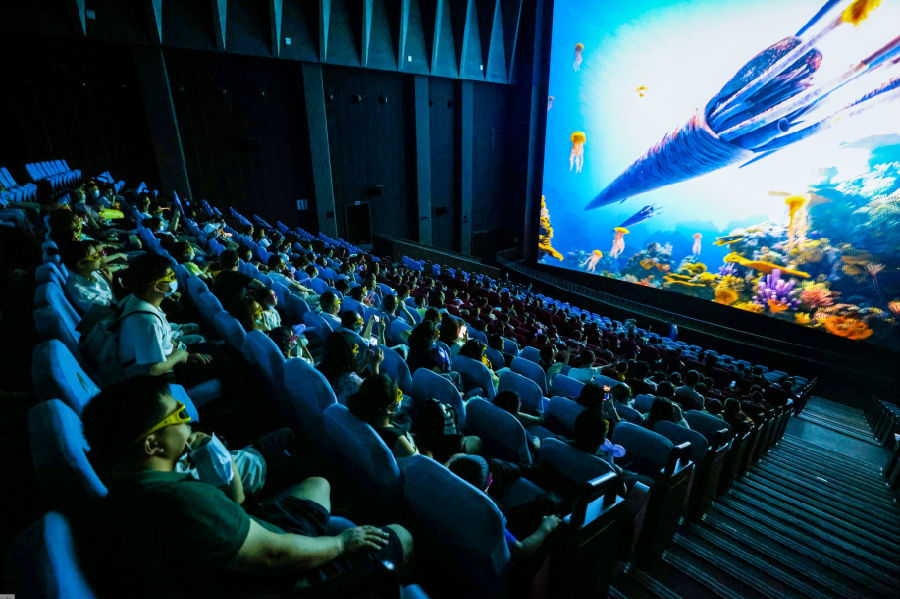 巨幕影院項目《生命之光》以3D巨幕形式講述了從宇宙大爆炸到地球生命誕生的演變過程。游客們穿行在波瀾壯闊的恐龍時代,探索地球生物誕生和演化的無窮奧秘,感受生命的多樣和燦爛。一位帶著兩個萌娃的家長觀影后贊不絕口,表示項目非常震撼,而且科普了很多知識,很有教育意義。