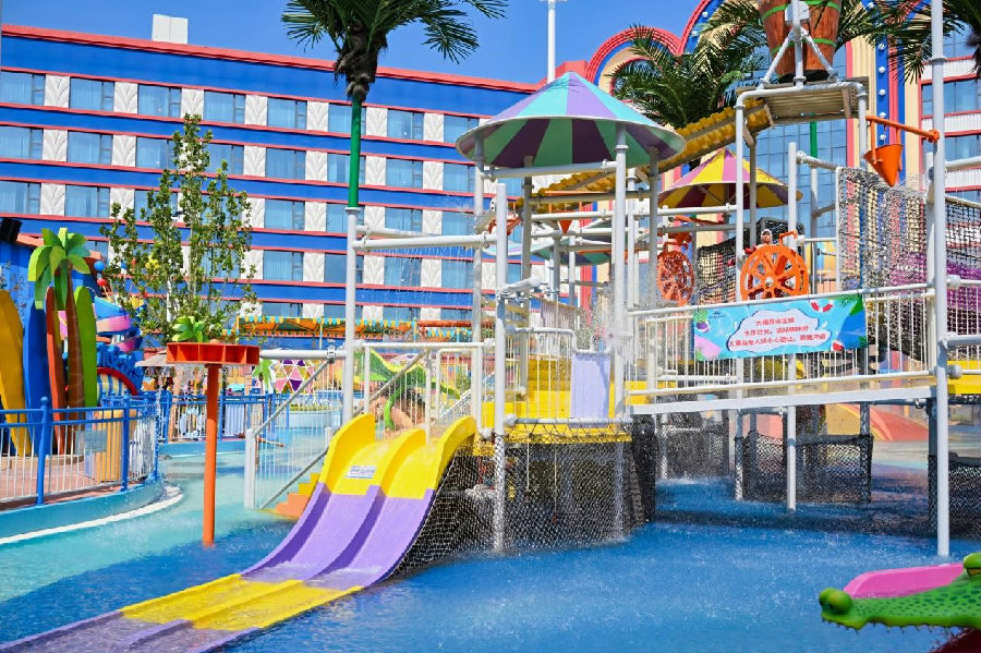 《熊出沒水寨》融合熊出沒元素打造了多款適合兒童及親子互動的家庭戲水項目,設有水槍對戰區、水上浮橋、水炮噴淋區等多種戲水區域,為游客開啟合家嬉水的歡愉時光。