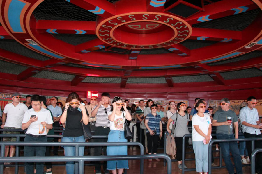 次日,華強方特盛邀參編單位專家全面了解方特主題樂園的不同產品。與會專家先后參觀了方特歡樂世界、方特夢幻王國兩座主題樂園。專家們饒有興致地體驗了《飛越千里江山》、《千古蝶戀》等項目,給予極高的評價和贊譽。大家表示,方特主題樂園的高科技“飛行觀畫”模式,讓人仿佛真的“翱翔”于千里江山間,如臨其境體會了傳世國寶的動人魅力。如夢如幻的“千古蝶戀”運用四面“幻影成像”全息投影舞臺,配合專業(yè)演藝者的現場表演,亦真亦幻地演繹了梁山伯與祝英臺的曠世之戀,高科技與舞臺藝術完美結合的演出,贏得現場體驗的專家們一致好評。