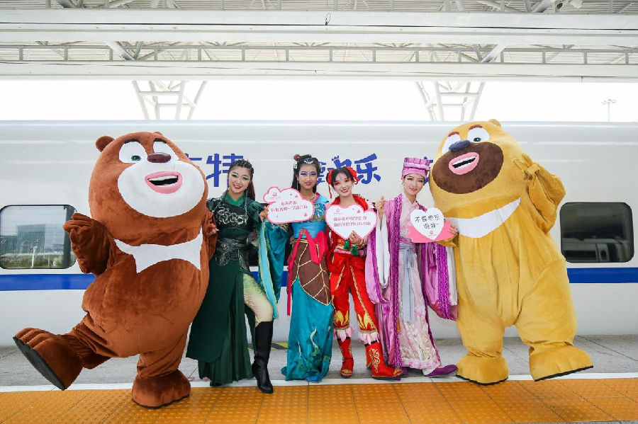 除了冠名此次上海虹橋-深圳北的動車組,華強方特今年還冠名了青島北-沈陽北G1248次、西安北-青島北G1856次、南寧東-北京西G422次等高鐵列車,以上高鐵線路途經的沈陽、青島、濟南、鄭州、株洲、南寧、長沙等城市,均運營有方特主題樂園。方特正以這種更加直觀的方式,努力將自己的歡樂理念傳播到更遼闊的中華大地上。