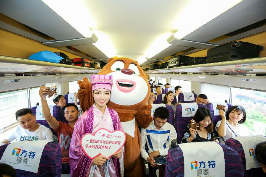 對于充滿方特元素的車廂布置,游客們紛紛點贊。其中一名前往廈門的乘客表示:“我去過廈門的方特主題樂園,確實很棒,這次能在車廂內與方特人偶親密互動,很開心,很歡樂!”