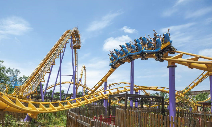 ▲過山車之夢俱樂部成員乘坐長沙方特東方神畫最新過山車《勇闖神界》。