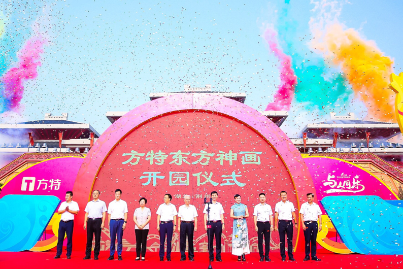 在眾人的見證下,現(xiàn)場鼓樂齊鳴、彩煙綻放,荊州方特東方神畫正式向世人開啟了歡樂之門。