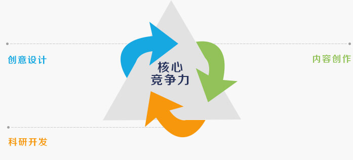 華強方特經(jīng)過多年的創(chuàng)新發(fā)展,已經(jīng)形成了以"創(chuàng)意設(shè)計"、"科研開發(fā)"、"內(nèi)容創(chuàng)作"為主的核心競爭優(yōu)勢,三足鼎立,相互支撐,形成了華強方特文化科技產(chǎn)業(yè)快速發(fā)展的核心競爭力。