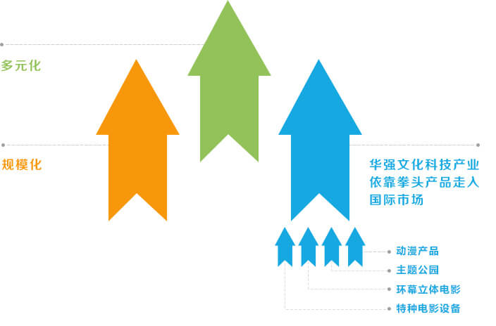 黨的十八大報告提出,促進文化和科技融合,發(fā)展新型文化業(yè)態(tài)。 “十三五”規(guī)劃綱要明確“推動文化產(chǎn)業(yè)成為國民經(jīng)濟支柱性產(chǎn)業(yè)”的目標要求。作為中國文化科技領(lǐng)軍企業(yè),華強方特深入貫徹黨中央精神指示,堅持文化科技融合發(fā)展,深化創(chuàng)新引領(lǐng)驅(qū)動,以講好中國故事為己任,國際范圍傳播中國文化,創(chuàng)新打造“創(chuàng)、研、產(chǎn)、銷”一體化產(chǎn)業(yè)鏈,實現(xiàn)文化科技產(chǎn)業(yè)規(guī)模化、多元化、國際化創(chuàng)新發(fā)展。