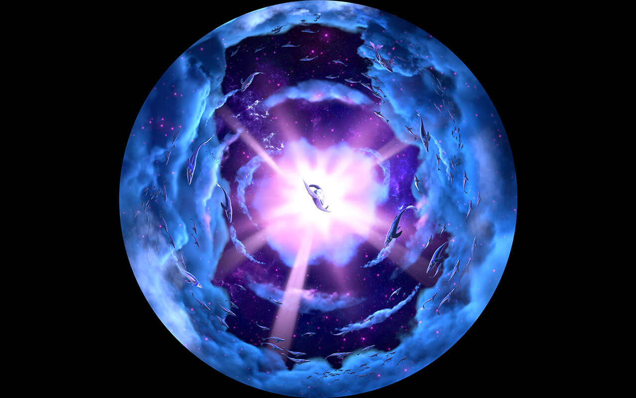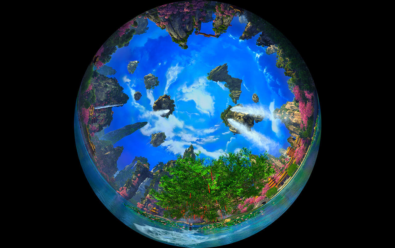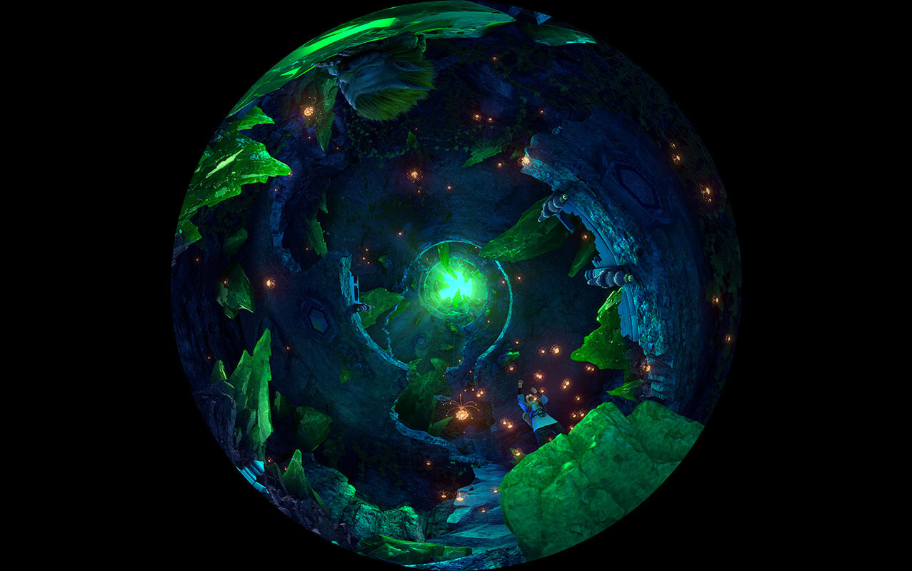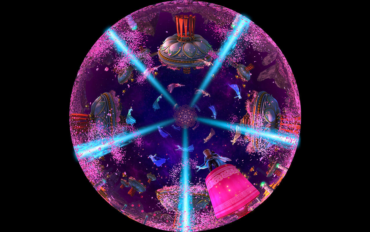 《牛郎織女》項目作為室內升降式穹頂影片的代表。使用真人實拍結合三維的形式,重新演繹經典愛情神話傳說“七夕鵲橋戀”。重點展現了牛郎飛上天庭尋妻,與織女鵲橋相會的情節,并將其打造成為一個恢弘絢麗的魔幻歷險題材主題項目。
